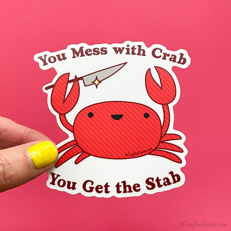 In stockRegular price $3.95Unit price /UnavailableCrab Vinyl Sticker "You Mess with Crab, You Get the Stab"