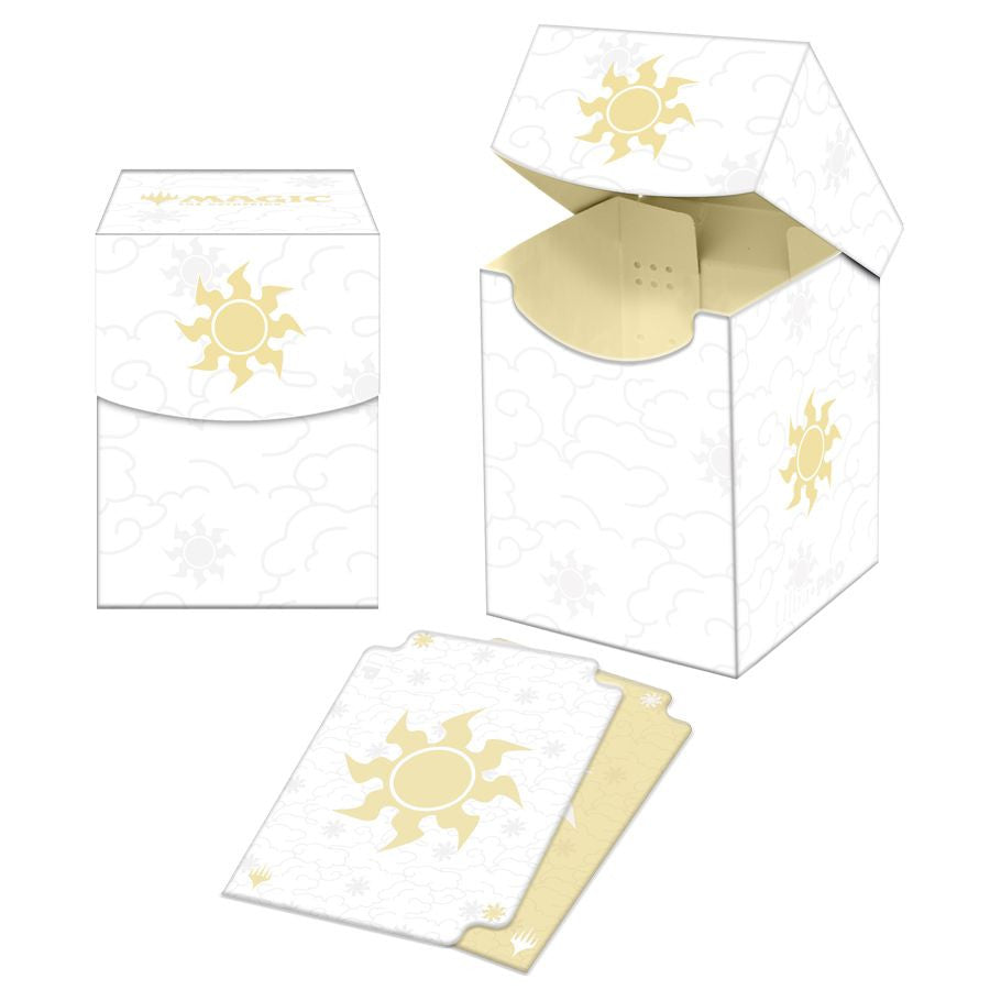 100+ Deck Boxes for Magic: The Gathering feature a vibrant, full-color artwork and includes a deck divider. Made with archival-safe, non-PVC, rigid polypropylene materials, you can store up to 100 double-sleeved cards with confidence. The self-locking lid keeps your cards securely stored when not in use, while also offering easy access. Sized for standard size trading cards.